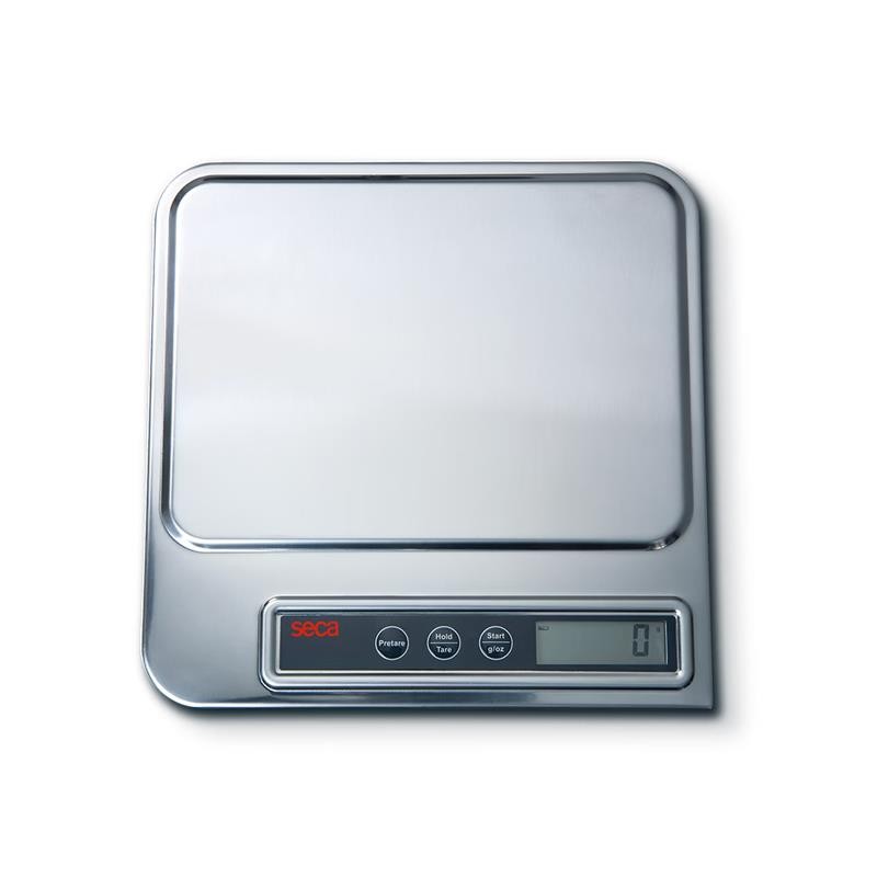 El relieve de la pantalla la protege contra la suciedad y un compartimiento de pilas con sellado especial evita la penetración de humedad en los componentes electrónicos. La báscula también satisface perfectamente las exigencias higiénicas: la superfi cie robusta y sellada de acero fi no se puede limpiar con