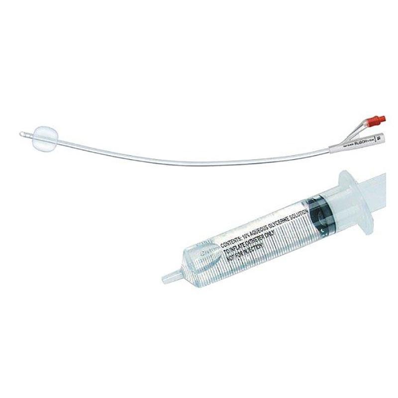 SONDA FOLEY 2 VIAS PUNTA CILINDRICA SILICONA AQUAFLATE CON BALON DE 10 ml. Y JERINGA PRE-LLENADA (5 unid) RUSCH