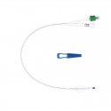 Sonda urológica desechable de silicona suave y flexible que reduce las reacciones alérgicas en las mucosas y aumenta la comodidad del paciente. La superficie de silicona y la punta atraumática, ligeramente redondeada, facilitan la inserción en las vías urinarias.