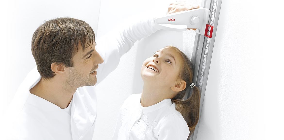 La varilla de medición se monta en la pared a la altura deseada. El usuario elige el alcance de medición indicado en el perfil, por lo cual el tallímetro seca 216 es apropiado para medir la talla tanto de adultos como de niños. El resultado ya se comprueba fácilmente durante el procedimiento de medición, a través de una ventana que permite una lectura sin esfuerzo, colocada al lado de la varilla de medición flexible. El dispositivo de bloqueo situado en el tope de la cabeza permite comprobar el resultado exacto incluso después de la medición. Una ventaja más: el tallímetro seca es ideal para el uso internacional, puesto que la escala viene impresa de ambos lados. Se puede insertar de una u otra manera en el perfil plástico, para que el resultado se lea en centímetros o bien en centímetros/pulgadas.