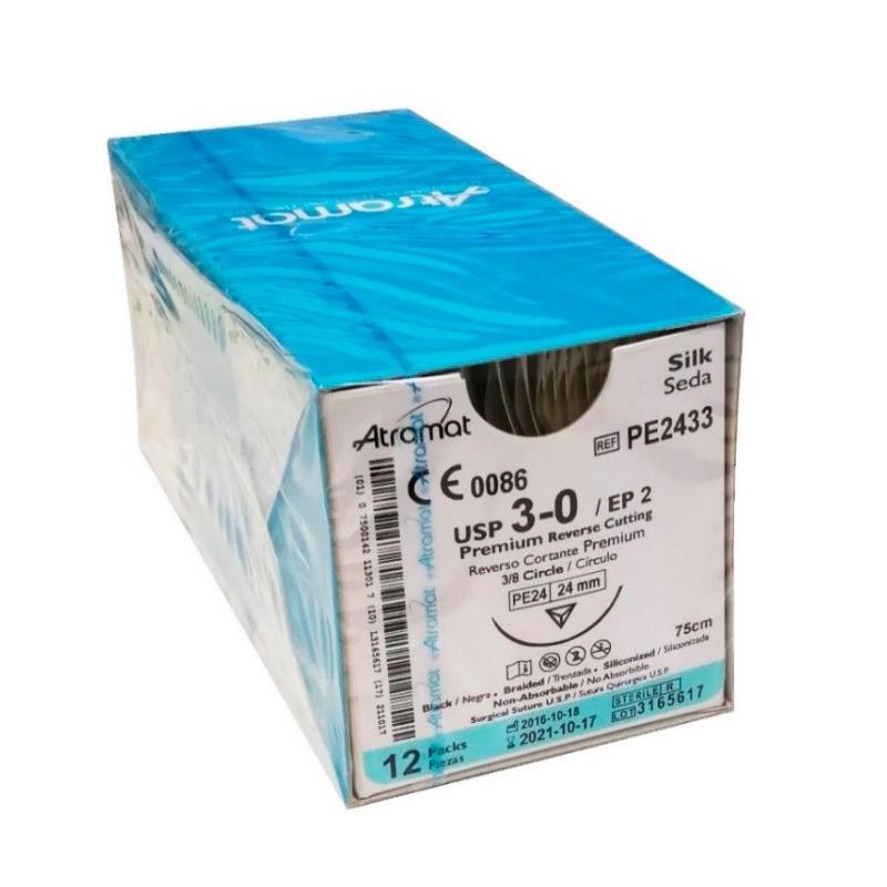 La sutura quirúrgica de seda ATRAMAT es una sutura estéril, no reabsorbible, multifilamento, fabricada a partir de una proteína orgánica, la fibroína, obtenida del gusano de seda Bombyx Mori de la familia Bombycidae.