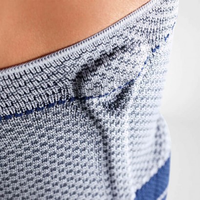 El tejido Train ofrece compresión medicinal y una alta transpirabilidad. En la corva y la pantorrilla, unas zonas elásticas especialmente extensibles garantizan la libertad de movimientos y una comodidad duradera. Las personas sensibles a la presión también se benefician de los suaves bordes. La silicona punteada del interior del borde superior garantiza la sujeción segura de GenuTrain A3 durante las actividades cotidianas o los ejercicios terapéuticos, incluso con un tejido conjuntivo débil. Las ayudas de colocación integradas en el lateral del vendaje para artrosis de rodilla son fáciles de agarrar y permiten así un manejo sencillo con poco esfuerzo.