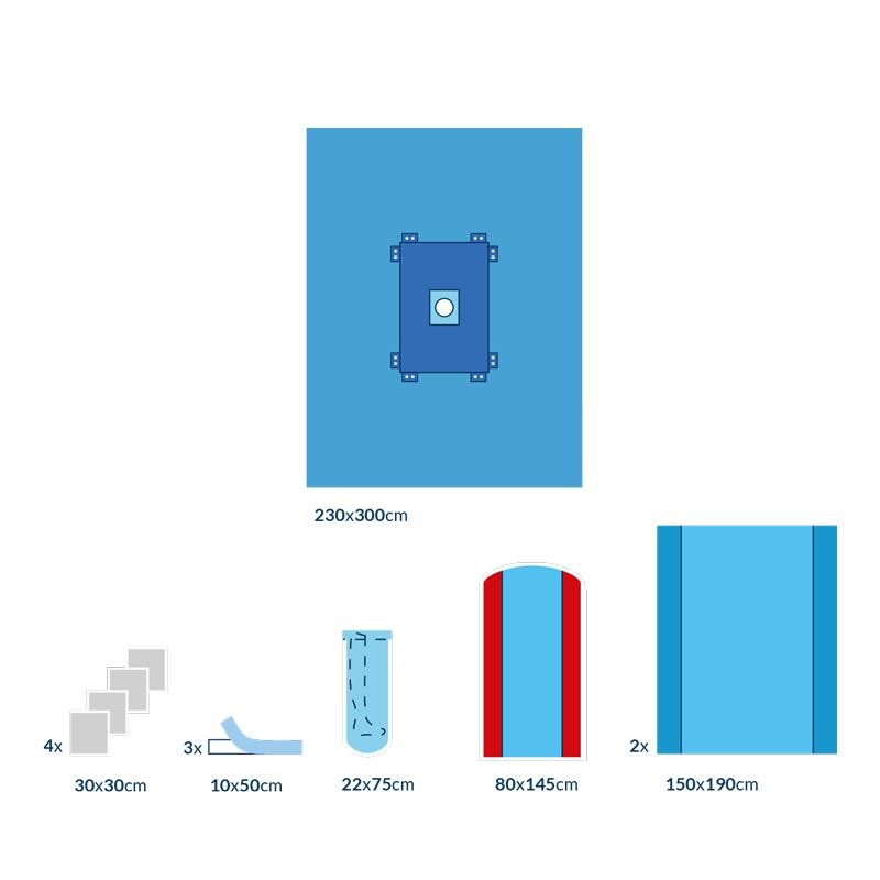Set estéril compuesto por 7 elementos como tallas, tallas absorbentes fundas y para mesa de mayo